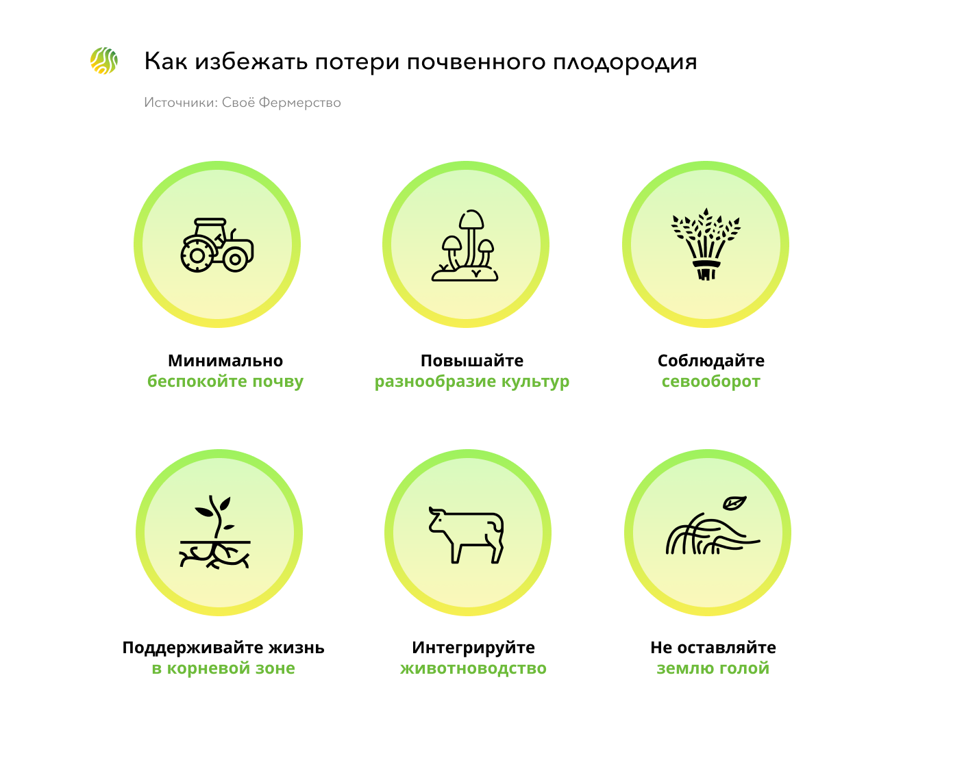 Восстановленные почвы удерживают влагу лучше истощенных и содержат больше питательных веществ. Это означает, что можно получать больший урожай на меньшем количестве земли, что снижает потребность в удобрениях и других химикатах. У восстановленной почвы более высокий pH (показатель кислотности или щелочности); благодаря этому, растения могут поглощать из нее больше питательных веществ.
