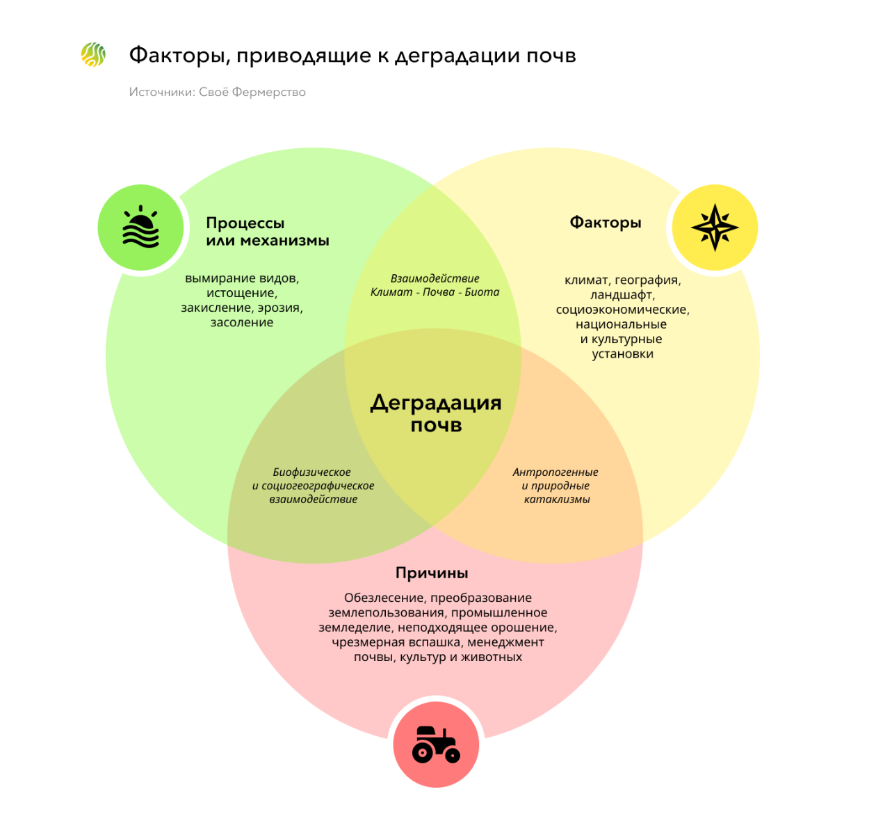 В последние десятилетия интенсивное сельское хозяйство на фоне почти полной утраты культуры земледелия настолько подкосило состояние почв, что об их плодородии говорить почти не приходится. Многие фермеры считают, что севооборот уже удастся, если пшеницу на поле чередовать с ячменем, у которых приблизительно одни болезни и вредители. В хозяйствах злоупотребляют агрохимикатами, уплотняют почву тяжелой техникой и распахивают даже крутые склоны. Из-за этого некогда плодородная земля теряет структуру, иссыхает, выветривается и вымывается. Можно ли спасти почву? Это довольно трудно, но вернуть былое плодородие можно
