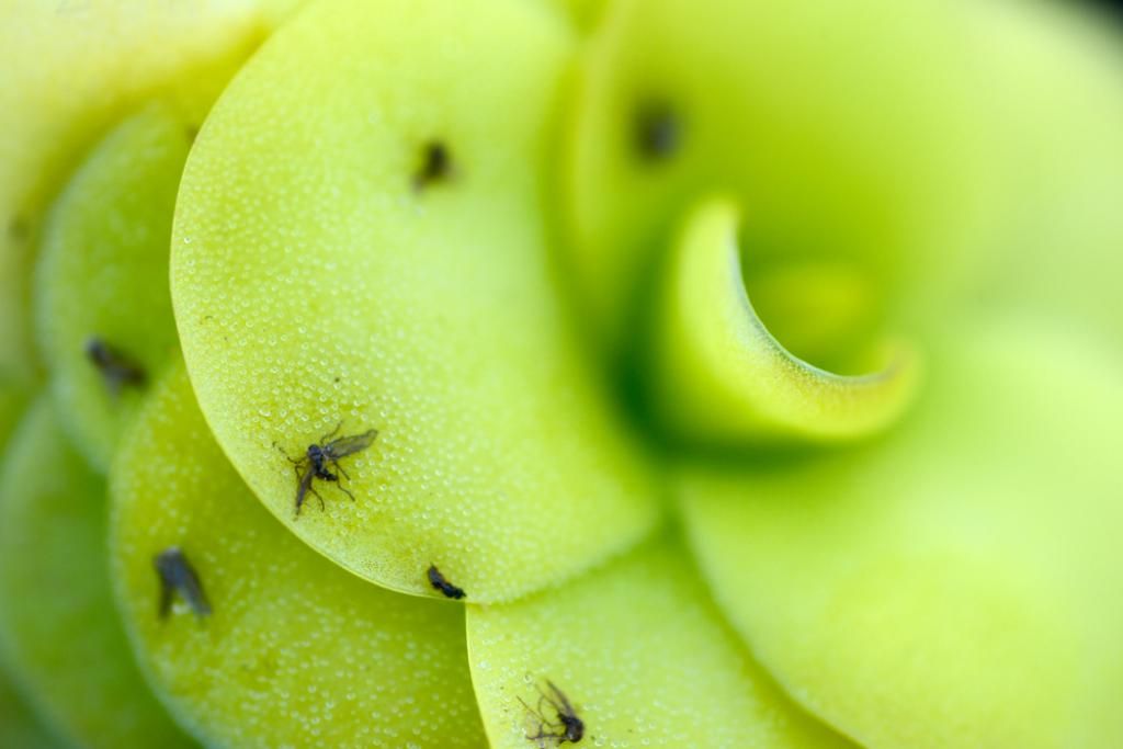 - Жирянка Бландфорда (Pinguicula blandfordensis) – необычный хищный цветок также демонстрирует замедленное развитие и цветет крайне редко, иногда с промежутком в десятки лет. Вид известен высоким уровнем требований к условиям среды обитания и чрезвычайно редкими проявлениями цветения.