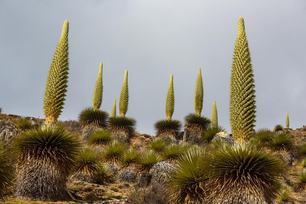 - Королева Анд (Puya raimondii) — растение уникальное и редкое, которое цветет единожды в 80–150 лет. Вместе с цветоносами оно достигает внушительной высоты до 12 м и выглядит, словно чудо природы. Примечательно, что королева Анд способна расти в суровых климатических условиях и на больших высотах, что кажется невозможным для большинства растений. В период цветения она выпускает высокий шип, усыпанный тысячами белых, зеленых и фиолетовых цветов. После того как шип разносит миллионы семян, растение погибает, завершив свой жизненный цикл.