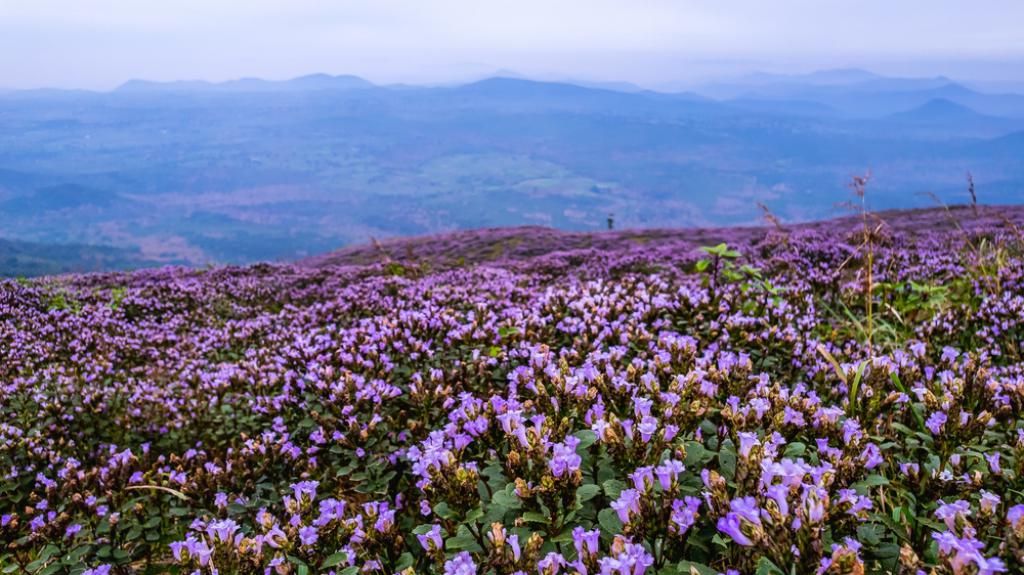 - Куринджи (Strobilanthes kunthiana) — кустарник с фиолетовыми или синими цветами, которые во время цветения буквально покрывают все растение, создавая эффект живого ковра. Этот удивительный куст украшает горные склоны Южной Индии и настолько впечатляет, что название хребта Нилгири даже переводится как «голубые горы» именно благодаря куринджи. Но полюбоваться цветением можно редко – один раз в 12 лет. При этом цикл настолько стабилен и предсказуем, что люди местных племен используют его для отсчета собственного возраста.