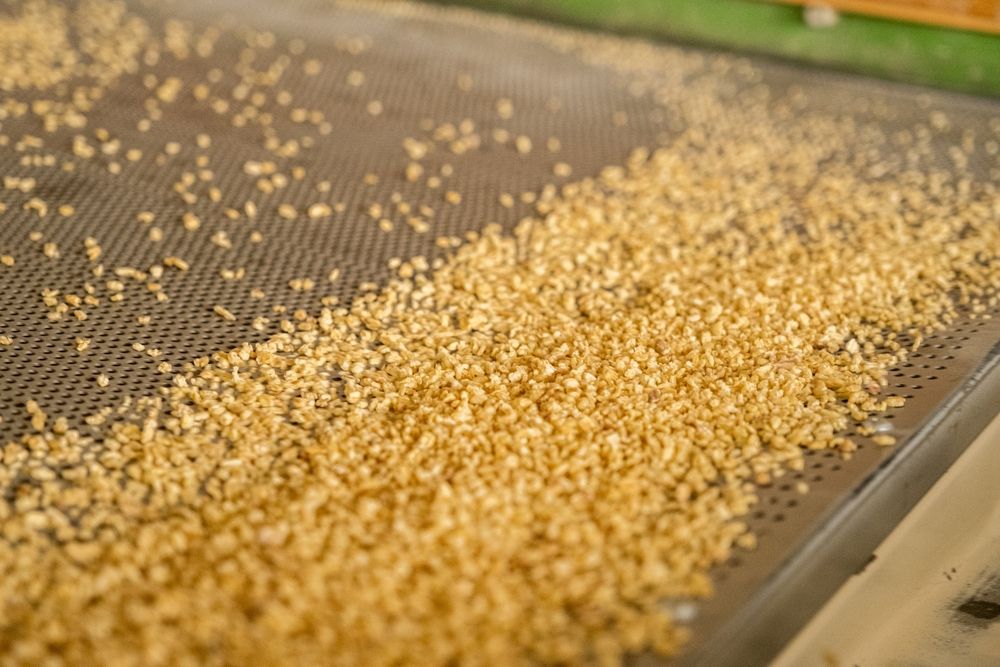 После термической обработки зерно содержит до 40–45% влаги, которую нужно снизить до 10%. В процессе сушки крахмал, который после варки стал мягким, структурируется и уплотняется, формируя устойчивую матрицу. Благодаря этому зерно становится твёрдым, хорошо переносит дробление и не превращается в кашу во время готовки.