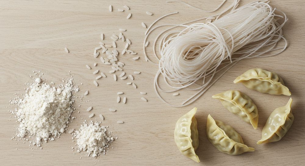 Рис (Oryza sativa) традиционно выращивается в затопленных чеках, однако в южных регионах России (Кубань, Дагестан) возделывают суходольный рис на обычных полях без специального орошения. Культура требовательна к теплу и влаге. У рисовой муки нейтральный вкус, ее берут для производства лапши, хлебцев и кондитерских изделий.