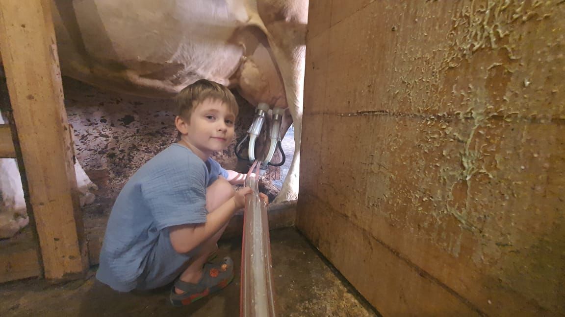 Во-первых, начинаешь любить животных. На самом деле эта прививка идёт с детства. Я и сыну прививаю труд и любовь к животным, у него даже есть любимая корова. Во-вторых, это питание: классно же, когда вы пьёте своё молоко и понимаете, что в нём ничего вредного нет. Я каждый день выпиваю литр молока на первой и на второй дойке.