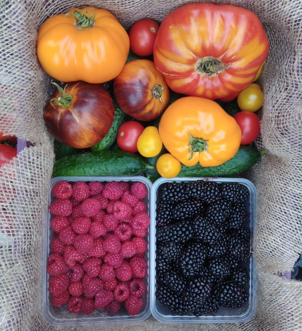Огурцы и помидоры в этом году мы выращивали для эксперимента. Дело в том, что нашу ягоду разбирают очень быстро, и иногда мы даже не успеваем привезти её на ярмарки. Чтобы не стоять за пустым прилавком, решили выращивать и продавать свои овощи. Несмотря на тяжёлый год, у меня выросли шикарные томаты: жёлтые, розовые, красные и биколоры. Людям они тоже очень понравились, а их запах сравнивали с помидорами, которые бабушка выращивала в огороде.