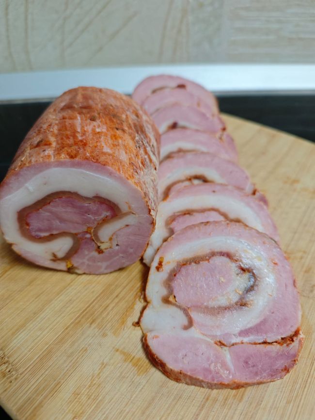 Многие выбирают именно кусковое мясо — карбонад. Очень хорошо продаётся куриная ветчина, особенно её любят дети. Ещё люди часто заказывают «рульку наизнанку», которая больше нигде не продаётся. Скорее всего, сначала берут её из интереса, но сразу влюбляются в продукт и заказывают его снова. Бывает, что я весь месяц готовлю только рульку, а иногда — только купаты.
